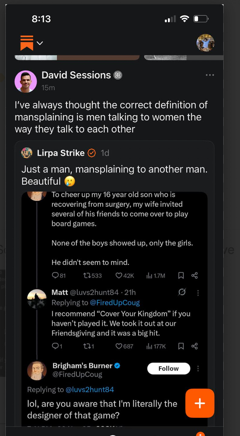 As so often happens in Substack world, there is a convergence of the forces, and two other relevant bits slid into my feed, totally randomly. Here is David Sessionsnoting that men like to argue (or maybe condescend to each other?):